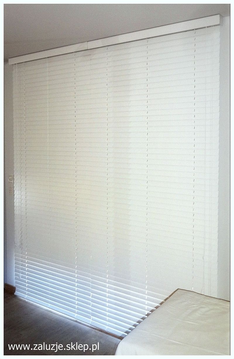 Żaluzje okienne oferujemy w różnych wariantach - na zdjęciu żaluzje drewniane, dostępne między innymi w kolorze białym. Takie żaluzje to gwarancja trwałych, eleganckich osłon okiennych. Oferujemy także serwis gwarancyjny i pogwarancyjny.