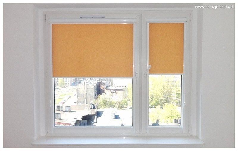Pomarańczowe rolety z tkaniny, która nie przepuszcza promieni słonecznych - zamontowana w kasecie z prowadnicami. Sprawdź inne kolory osłon okiennych - rolety, plisy czy żaluzje z naszej oferty. Montaż na Śląsku, serwis gwarancyjny od Akces Sosnowiec.