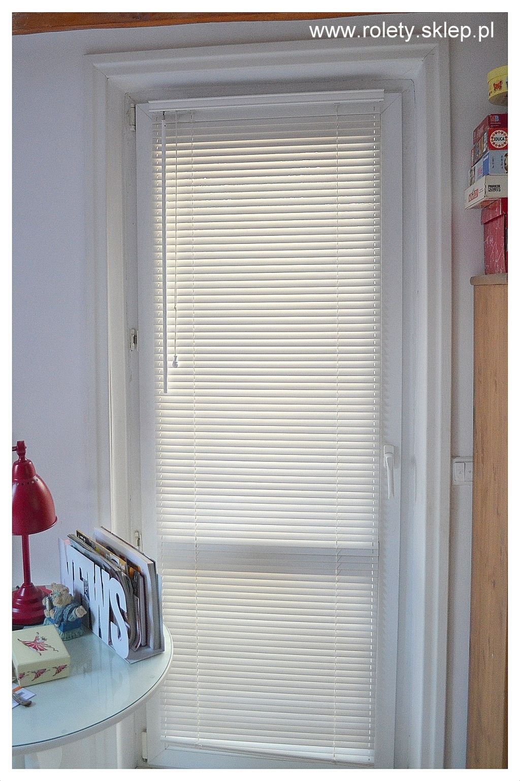 Żaluzja z drewna, szerokość pióra 25mm , montaż bezinwazyjny do okien PCV