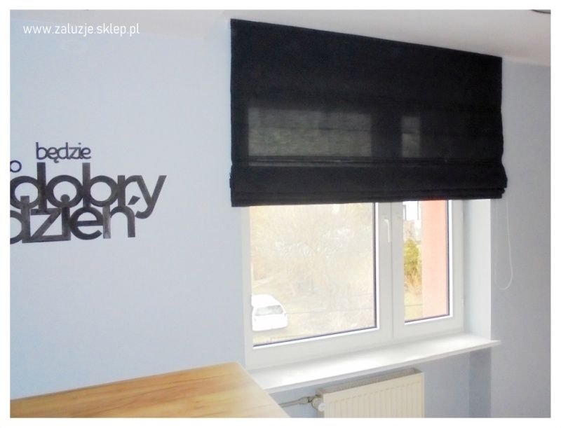 Eleganckie czarne rolety rzymskie od Akces Sosnowiec - styl i funkcjonalność w jednym.
