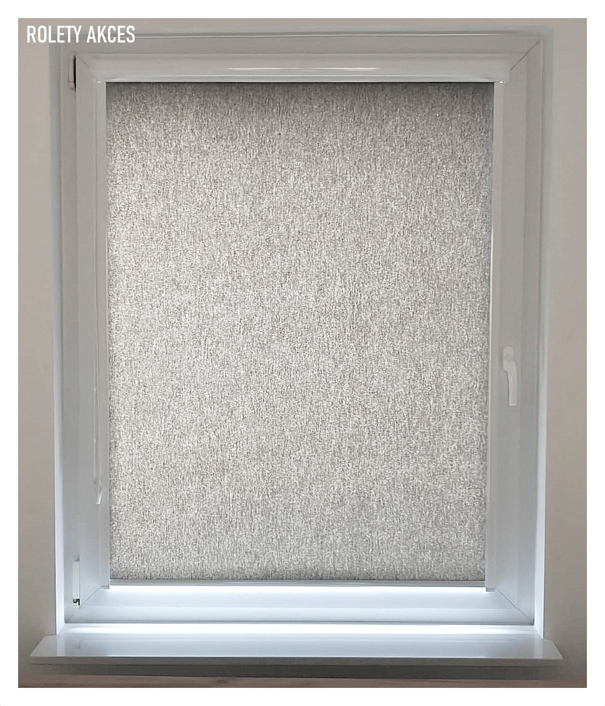 Nowoczesna szara roleta materiałowa Akces. Proste prowadzenie, estetyczna kaseta i kolor pasujący do wnętrz skandynawskich, loftowych i minimalistycznych.