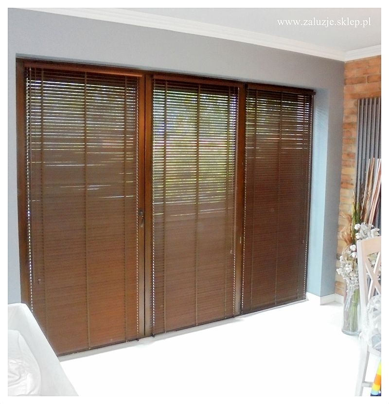 Żaluzje drewniane na drzwiach tarasowy.
