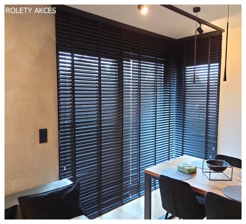 Czarne aluminiowe żaluzje 25mm - styl i funkcjonalność dla Twojego wnętrza.