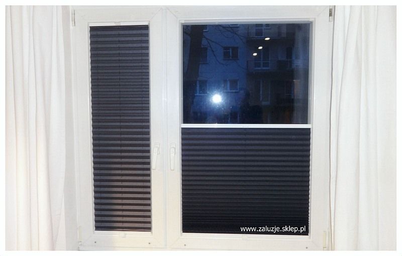 Praktyczne plisy pozwalają na odsłonięcie dołu lub góry każdego okna, wykonane są na wymiar i nie odstają od szyby.