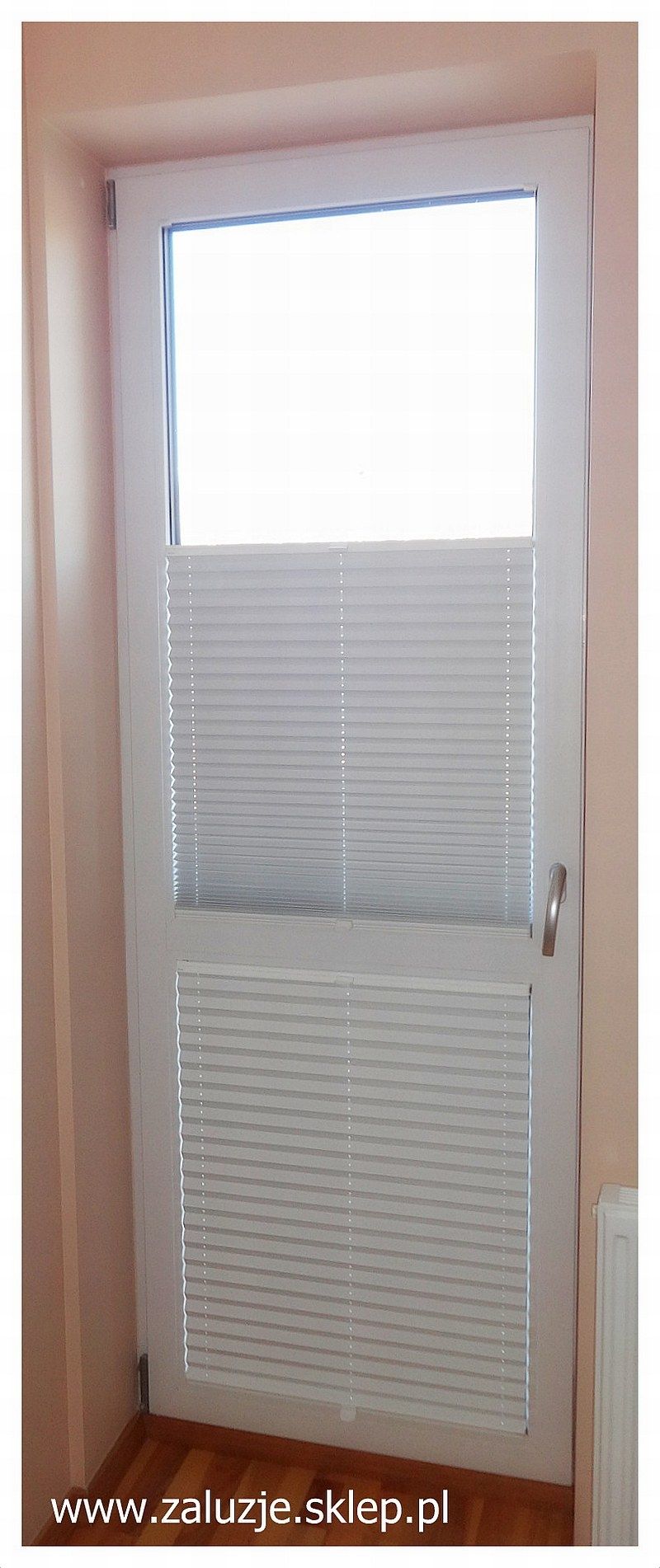 Zdjęcie przedstawia jedną z naszych realizacji - plisy okienne drzwiowe, w kolorze białym, zamontowane u klienta na Śląsku.
